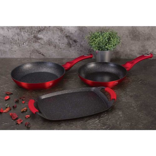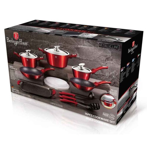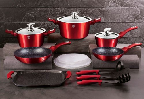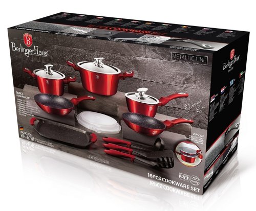 Hledáte vhodnou sadu nádobí do vaší kuchyně? Sadou získáte všechny potřebné nádoby na vaření, ať už budete vařit pro sebe nebo pro více osob. Velkou výhodou je, že můžete objednat najednou více nádobí od ověřeného výrobce BERLINGERHAUS. Sadu nádobí sjednocuje jednotný design, navíc červená barva celé sady je univerzální a vyjímat se bude v každé kuchyni.