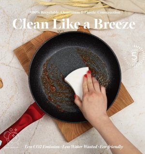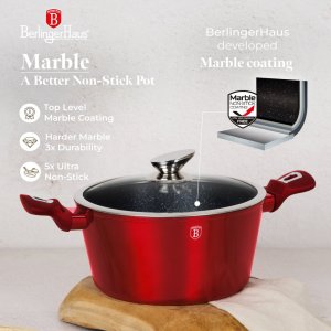 - doménou této sady je 3vrstvý povrch s mramorovým designem charakteristický svou dokonalou nepřilnavostí, žádné potraviny se nepřipalují a díky tomu se kastroly i pánve velice snadno čistí
