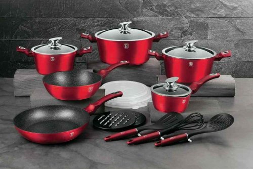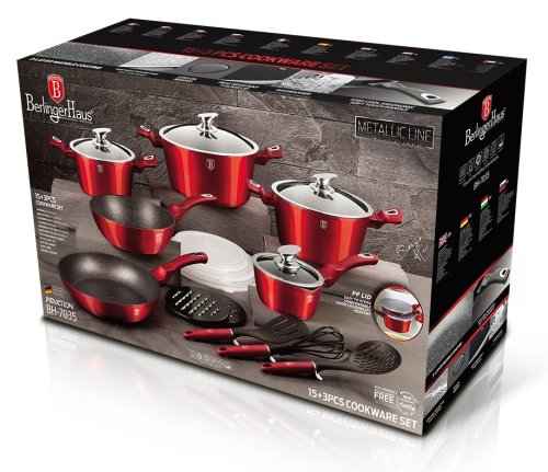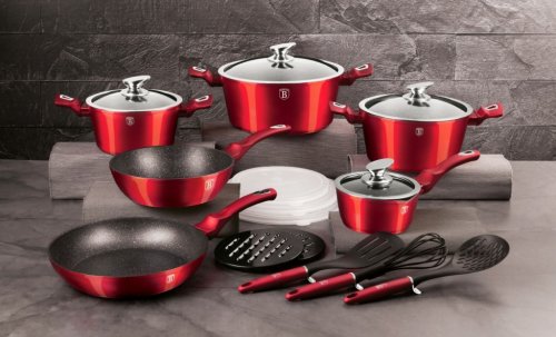 Hledáte vhodnou sadu nádobí do vaší kuchyně? Sadou získáte všechny potřebné nádoby na vaření, ať už budete vařit pro sebe nebo pro více osob. Velkou výhodou je, že můžete objednat najednou více nádobí od ověřeného výrobce BERLINGERHAUS. Sadu nádobí sjednocuje jednotný design, navíc červená barva celé sady je univerzální a vyjímat se bude v každé kuchyni.