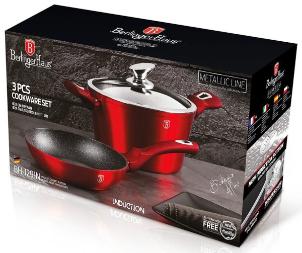 Sada nádobí s mramorovým povrchem 3 ks Burgundy Metallic Line BH-1291