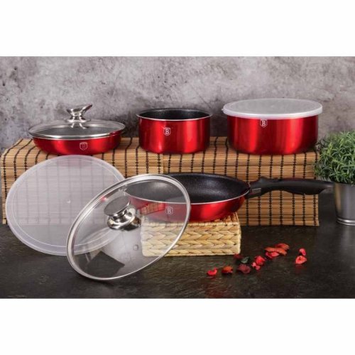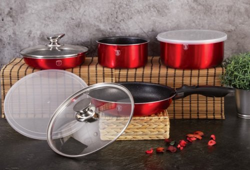 Hledáte vhodnou sadu nádobí do vaší kuchyně? Sadou získáte všechny potřebné nádoby na vaření, ať už budete vařit pro sebe nebo pro více osob. Velkou výhodou je, že můžete objednat najednou více nádobí od ověřeného výrobce BERLINGERHAUS. Sadu nádobí sjednocuje jednotný design, navíc červená barva celé sady je univerzální a vyjímat se bude v každé kuchyni.