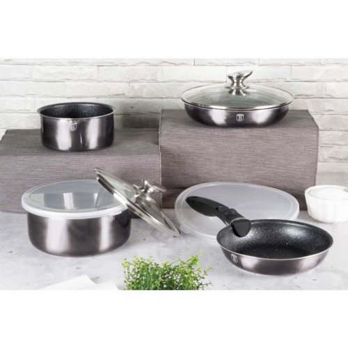 Hledáte vhodnou sadu nádobí do vaší kuchyně? Sadou získáte všechny potřebné nádoby na vaření, ať už budete vařit pro sebe nebo pro více osob. Velkou výhodou je, že můžete objednat najednou více nádobí od ověřeného výrobce BERLINGERHAUS. Sadu nádobí sjednocuje jednotný design, navíc černá barva celé sady je univerzální a vyjímat se bude v každé kuchyni.