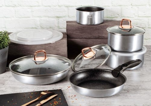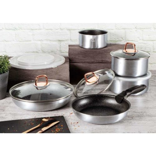 Hledáte vhodnou sadu nádobí do vaší kuchyně? Sadou získáte všechny potřebné nádoby na vaření, ať už budete vařit pro sebe nebo pro více osob. Velkou výhodou je, že můžete objednat najednou více nádobí od ověřeného výrobce BERLINGERHAUS. Sadu nádobí sjednocuje jednotný design, navíc stříbrná barva celé sady je univerzální a vyjímat se bude v každé kuchyni.