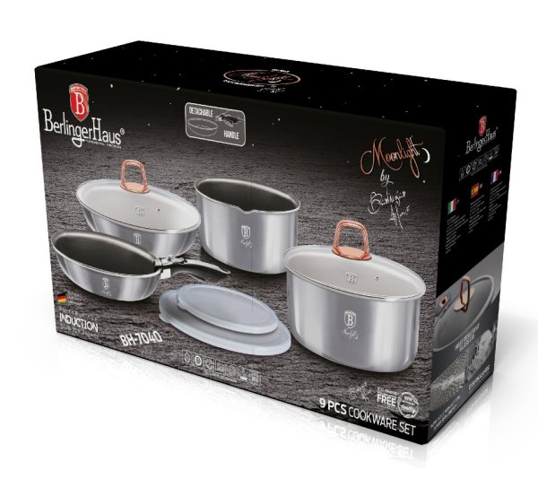 Jedinečná sada nádobí s odnímatelnou rukojetí ze zářivé kolekce Moonlight Edition.