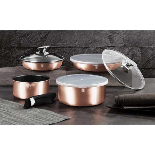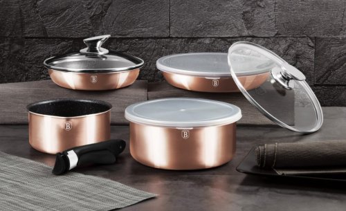 Hledáte vhodnou sadu nádobí do vaší kuchyně? Sadou získáte všechny potřebné nádoby na vaření, ať už budete vařit pro sebe nebo pro více osob. Velkou výhodou je, že můžete objednat najednou více nádobí od ověřeného výrobce BERLINGERHAUS. Sadu nádobí sjednocuje jednotný design, navíc zlatá barva celé sady je univerzální a vyjímat se bude v každé kuchyni.