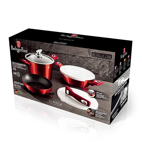 Sada nádobí s odnímatelnou rukojetí a mramorovým povrchem 6 ks Burgundy Metallic Line.