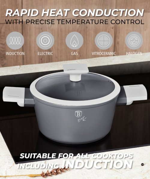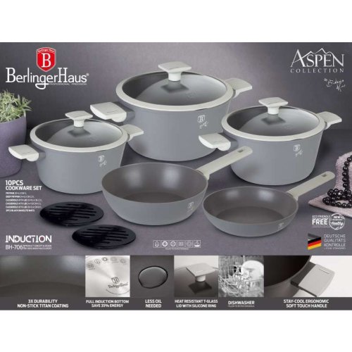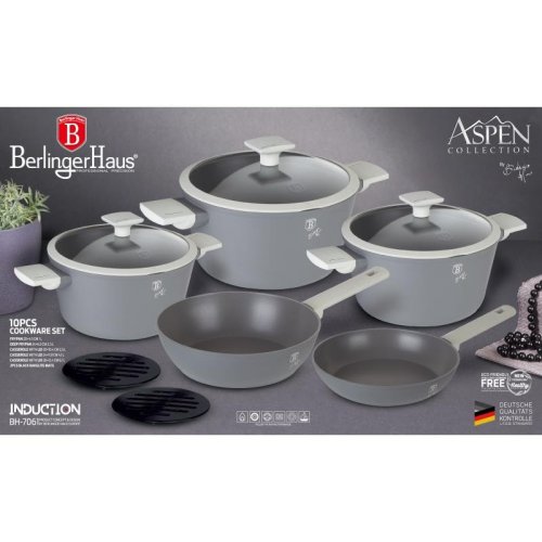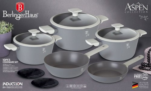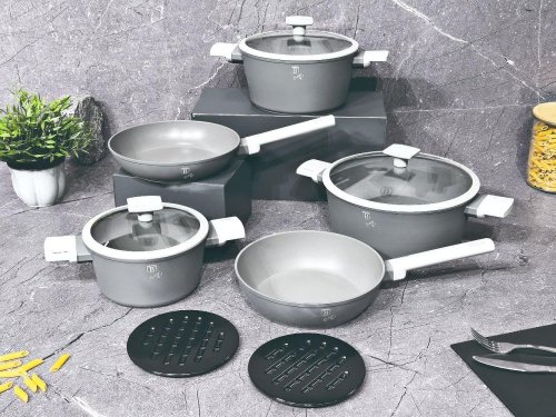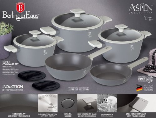 Hledáte vhodnou sadu nádobí do vaší kuchyně? Sadou získáte všechny potřebné nádoby na vaření, ať už budete vařit pro sebe nebo pro více osob. Velkou výhodou je, že můžete objednat najednou více nádobí od ověřeného výrobce BERLINGERHAUS. Sadu nádobí sjednocuje jednotný design, navíc šedá barva celé sady je univerzální a vyjímat se bude v každé kuchyni.