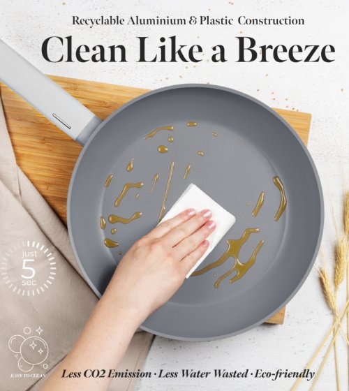 - díky nadstandartním nepřilnavým vlastnostem titanového povrchu je čištění nádobí rychlé a nenáročné, stačí omýt teplou vodou a houbičkou