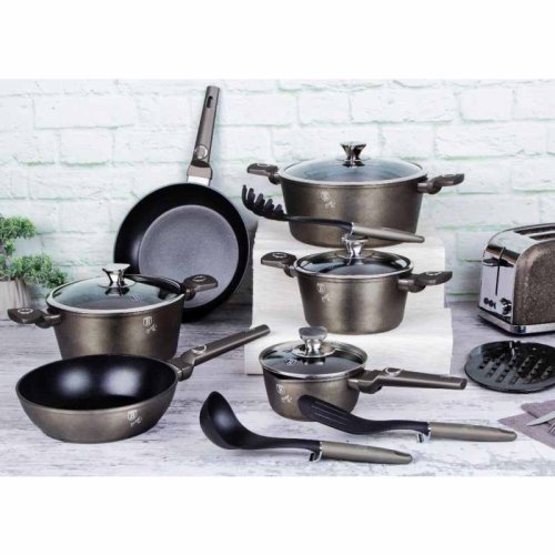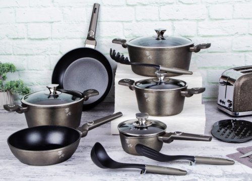 Hledáte vhodnou sadu nádobí do vaší kuchyně? Sadou získáte všechny potřebné nádoby na vaření, ať už budete vařit pro sebe nebo pro více osob. Velkou výhodou je, že můžete objednat najednou více nádobí od ověřeného výrobce BERLINGERHAUS. Sadu nádobí sjednocuje jednotný design, navíc šedá barva celé sady je univerzální a vyjímat se bude v každé kuchyni.