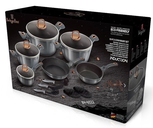 Hledáte vhodnou sadu nádobí do vaší kuchyně? Sadou získáte všechny potřebné nádoby na vaření, ať už budete vařit pro sebe nebo pro více osob. Velkou výhodou je, že můžete objednat najednou více nádobí od ověřeného výrobce BERLINGERHAUS. Sadu nádobí sjednocuje jednotný design, navíc stříbrná barva celé sady je univerzální a vyjímat se bude v každé kuchyni.