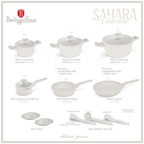 Sada nádobí 15 ks BERLINGERHAUS BH-8401 Sahara Marble Collection – Kámen, elegance a síla v jedné sadě.