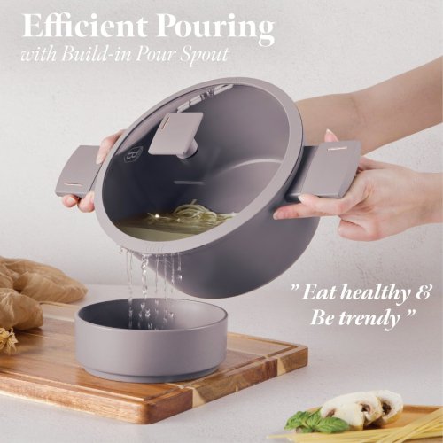 - Materiál: kovaný hliník s nepřilnavým povrchem titanPro- Součástí balení je:- Hluboká pánev pr. 24*6,5 cm 2,3 l.- Pánev pr. 28*5,2 cm 2,4L- Kastrol s cedící poklicí pr. 20*10,4 cm 2,5L- Kastrol s cedící …