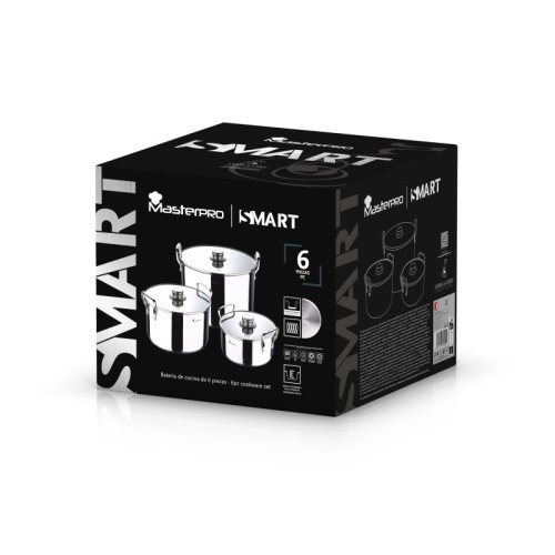 Kompletní sada nerezového nádobí pro každodenní vaření – Sada SMART obsahuje 6 kusů kvalitního nerezového nádobí, které je ideální pro přípravu všech typů jídel. Perfektní volba pro domácnosti, které hledají odolné, funkční a elegantní nádobí.