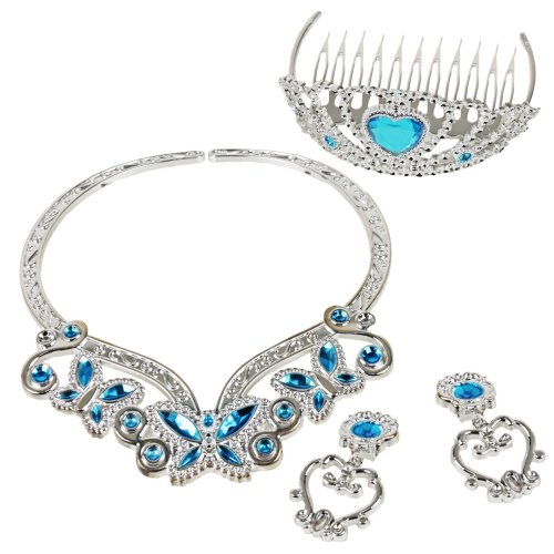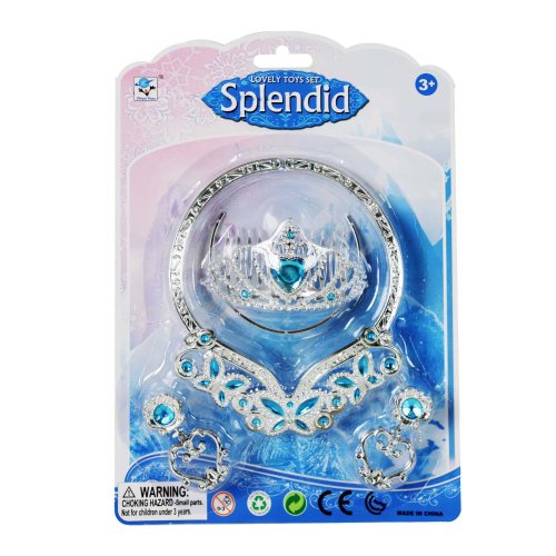 Krásná korunka s náušnicemi a náhrdelníkem pro všechny sněhové princezny. Doplňky jsou zdobeny modrými prvky a korunka navíc nepřehlédnutelným ozdobným kamínkem. Perfektní sada ke kostýmu! Doporučeno pro děvčata od 3 let.