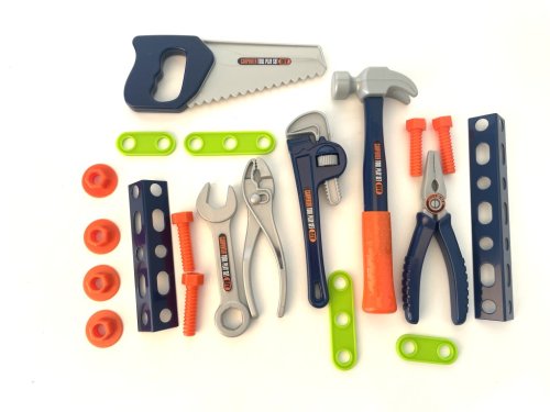 Sada plastového nářadí pro malé kutily. Výrobek je vhodný pro děti od 3 let.