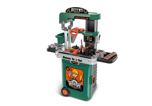 Tato sada nářadí je perfektní pro malé kutily! Sada je uložena v praktickém kufříku na kolečkách, který se snadno přenáší a ukládá. Děti si mohou vyzkoušet práci s nářadím, protože kufřík lze rozložit do stolní nebo stojící verze ponku, což jim poskytne ideální prostor pro kreativní činnosti. Součástí sady je spousta doplňků, které stimulují dětskou zručnost a představivost. Velikost kufříku: 22 × 17 × 48 cm.