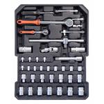 klíčů, kladivo, vodováhu, stranové i imbus klíče, bity, základní