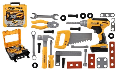 Tato dětská sada nářadí s vrtačkou je ideálním dárkem pro malé kutily, kteří rádi napodobují práci dospělých. Sada obsahuje vše potřebné pro malé opraváře v praktickém plastovém kufříku. Hračka je vybavena zvukovými efekty a napájena packem na baterie (3xAAA, nejsou součástí balení), kompatibilní s dalšími nástroji stejné značky. Velikost vrtačky: 16 x 17 cm Rozměr balení: 26 x 25 x 9 cm Vhodné pro děti od 3 let