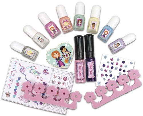 Obsah: 8 laků na nehty (7 barevných a 1 se třpytkami), 2 pera na nehty, samolepky na nehty, samolepící drahokamy, obtisky, 2 pěnové děliče mezi prsty, pilníček na nehty, průvodce.UPOZORNĚNÍ Nebezpečí udušení. Nevhodné pro děti mladší 36 měsíců. Obsahuje malé části, které by mohly být spolknuty nebo vdechnuty. Obal není hračka, před použitím hračky ho odstraňte z dosahu dítěte, může způsobit zadušení.