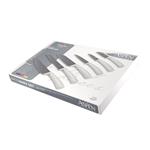 6 kvalitních nožů využijete na rozřezávání a krájení různých potravin. Najdete mezi nimi kuchařský, užitkový a okrajovací nůž, nůž na chléb a 2 nože Santoku. Elegantní design kolekce Aspen doplní každou kuchyni.