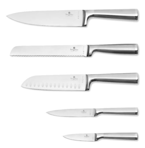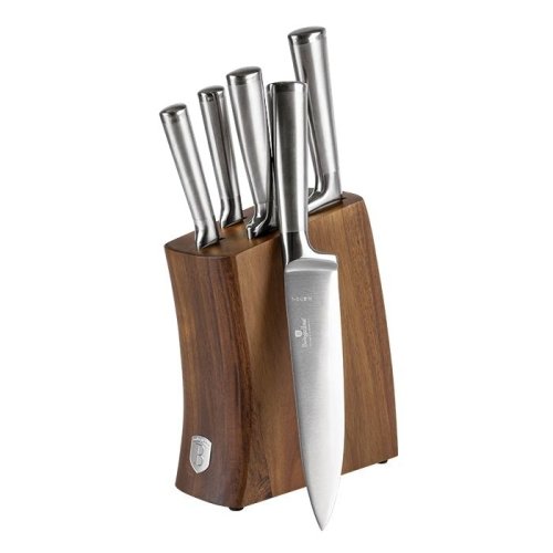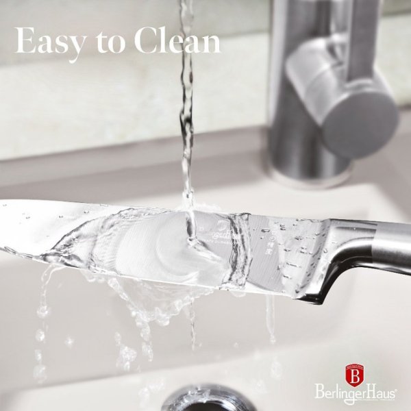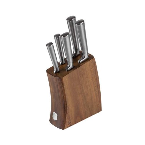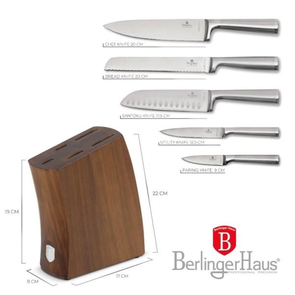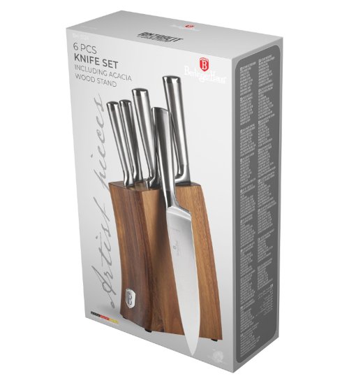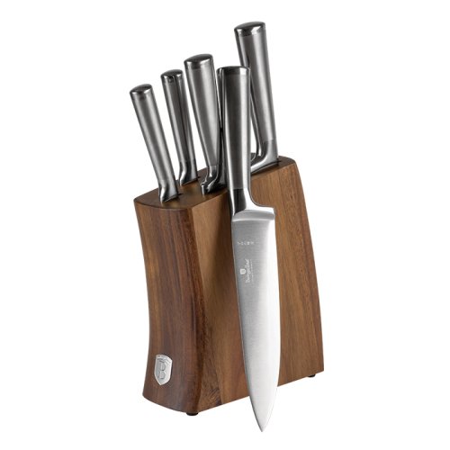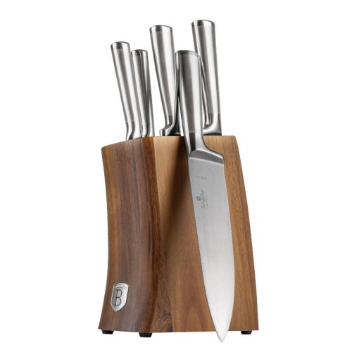 Sada Berlingerhaus Antracit se skládá z 5 nožů a stojanu s akáciového dřeva. Čepele jsou ručně ostřené a tepelně zpracované. Rukojeť je navíc vybavená ochranou prstů, abyste se během krájení nepořezali o vnitřní stranu čepele.