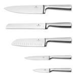 5 nožů z vysoce kvalitní nerezové oceli využijete na rozřezávání a krájení různých potravin. Najdete mezi nimi kuchařský a pracovní nůž, nůž na chléb, Santoku a nůž na krájení. Elegantní design kolekce Antracit doplní každou kuchyni.