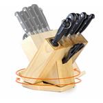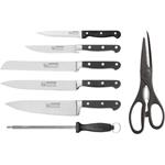 Set obsahuje kuchařský, porcovací a univerzální nůž, ocílku, nůžky, otočný stojan, nůž na pečivo a nůž na zeleninu. Veškeré kuchyňské pomůcky se vám v ruce bezpečně a pohodlně drží. Jsou totiž vybavené ergonomicky tvarovanou rukojetí. Díky kvalitnímu provedení vám sada vydrží po dlouhou dobu.