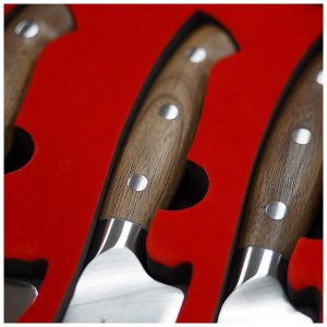 S noži Dellinger Walnut zvládnete vše – od porcování masa až po jemné loupání ovoce. Díky preciznímu zpracování, vyvážené konstrukci a ručnímu broušení se stanou skutečným šperkem vaší kuchyně. Každý nůž padne skvěle do ruky, a to jak pravákům, tak levákům. Kromě samotných nožů sada obsahuje karbonovou ocílku, která pomůže udržet ostří v dokonalé kondici. Vše je přehledně uloženo v luxusní dárkové krabici, která dělá ze sady ideální dárek pro milovníky vaření i profesionály.