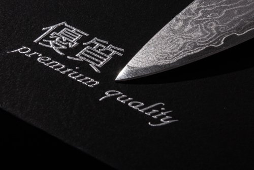 Čepel nože je z kvalitní 67vrstvé damaškové oceli VG-10 s tvrdostí 60 HRC (u běžných nožů se tvrdost pohybuje kolem 55 HRC, opravdu ostré nože mají tvrdost 58–60 HRC).