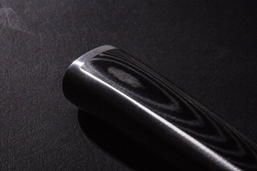 Rukojeť je vyrobena z extra pevného a odolného laminátového materiálu, nazývaného Micarta. Micartu tvoří plátno nebo skelná tkanina s termostatickou pryskyřicí. Výsledkem je pevná, houževnatá rukojeť, která nepodléhá zkáze času. Hladké, rovné, čisté linie těchto nožů se stanou ozdobou každé kuchyně.