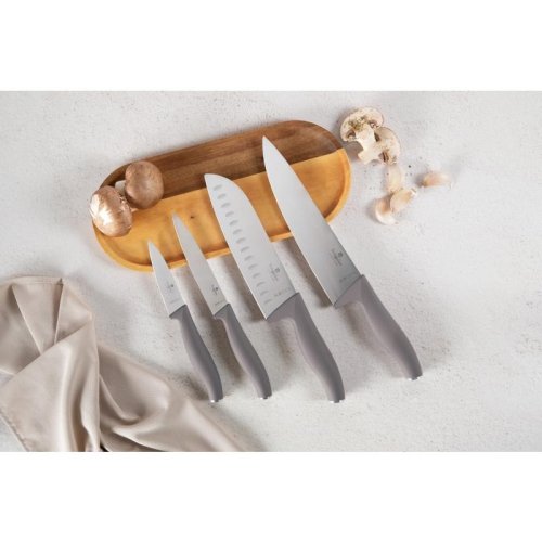 - Vysoce kvalitní nerezová ocel- Tepelné zpracování čepele- Ergonomická rukojeť Soft Touch- Ochrana prstů- Ručně ostřeno- Elegantní design- Barva: šedo-hnědá taupe- sada 4 ks obsahuje:- kuchařský nůž …
