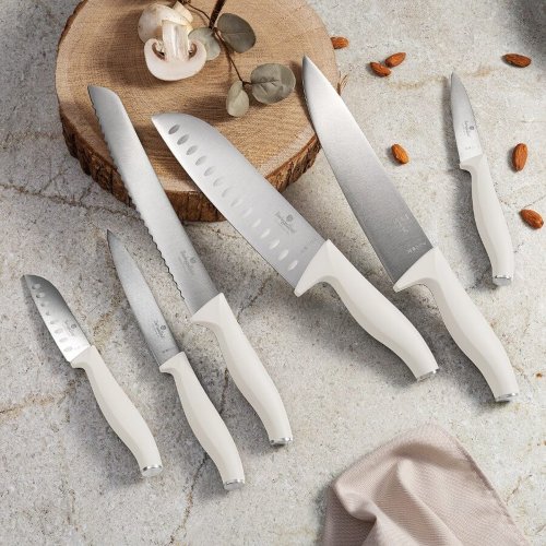 - Materiál: Materiál: nerezová ocel 3cr13- Kuchařský nůž 20 cm- Nůž na chléb 20 cm- Nůž Santoku 17,5 cm- Užitkový nůž 12,5 cm- Nůž na okrajování 9 cm- Nůž Santoku 9 cm- Magnetická dárková krabička- Barva: …