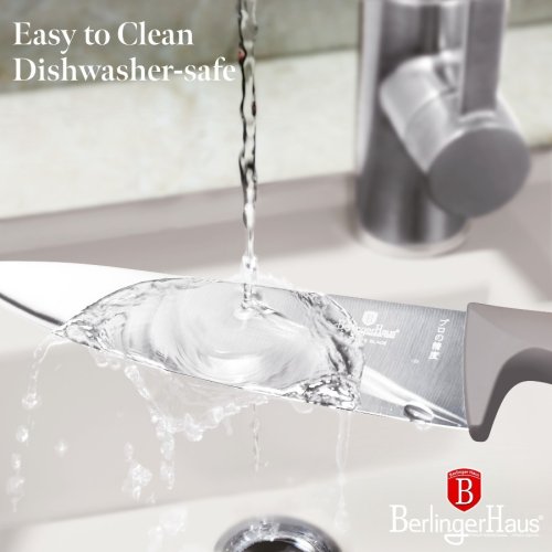 Seznam varování o bezpečnosti kuchyňských nožů a nůžek vychází z požadavků nařízení (EU) 2023/988 o obecné bezpečnosti výrobků (GPSR): 1. Riziko poranění: Buďte obzvláště opatrní při používání nožů a kuchyňských nůžek. Čepele jsou ostré a mohou způsobit vážné poranění. 2. Skladování: Uchovávejte nože a kuchyňské nůžky na bezpečném místě, mimo dosah dětí a neoprávněných osob. Používejte bloky na nože, kryty na čepele nebo speciální zásuvky. 3. Použití: Používejte kuchyňské nože a nůžky pouze podle jejich zamýšleného účelu. Vyhýbejte se nadměrnému tlaku a nesprávným pohybům, které mohou vést ke ztrátě kontroly a poranění. 4. Opatrnost při krájení: Při krájení umístěte prkénko na stabilní povrch, abyste zabránili jeho posouvání. Držte prsty daleko od čepele. 5. Čištění: Čistěte nože a kuchyňské nůžky opatrně pomocí ochranných rukavic. Vyhněte se přímému kontaktu s ostřím. Nevkládejte nože do myčky nádobí, protože vysoká teplota a čisticí prostředky mohou poškodit čepel a rukojeť. 6. Ostření: Pravidelně ostří nože, aby bylo zajištěno jejich správné fungování a sníženo riziko poranění způsobeného používáním tupých nástrojů. Ostříhejte nože pomocí vhodných ostřičů, při zachování opatrnosti a podle návodu. 7. Oprava: Nepoužívejte poškozené nože a kuchyňské nůžky. Odevzdejte je k opravě nebo je vyměňte za nové. 8. Likvidace: Bezpečně likvidujte opotřebované nebo poškozené nože a kuchyňské nůžky, abyste zabránili náhodnému poranění. Chraňte čepel před vyhozením. 9. Přenášení: Při přenášení nožů a kuchyňských nůžek používejte kryty na čepele nebo speciální pouzdra, abyste zabránili náhodnému poranění.