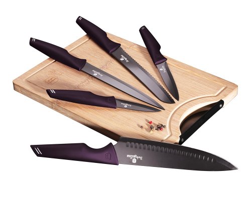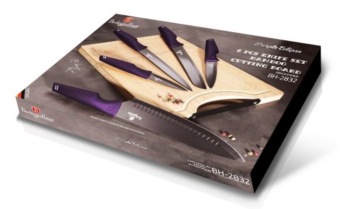 Sada nožů s nepřilnavým povrchem + prkénko 6 ks Purple Eclipse Collection je výbornou alternativou pro kuchaře různých úrovní, na jejíž výrobu byl použit kvalitní materiál: nerez ocel s nepřilnavým povrchem, vynikají perfektní ostrostí čepele a designem. Velmi oceníte i ergonomicky tvarovanou rukojeť, díky které se vám nože budou skvěle držet. Celá sada je dílem výrobce BERLINGERHAUS, jež se výrobě nožů věnuje poměrně dlouho a jsou řádně odzkoušeny.