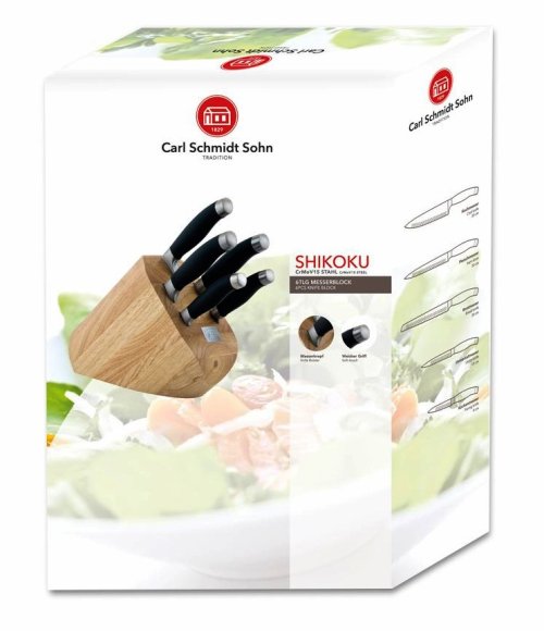 Sada nožů v bloku 6 ks SHIKOKU NEW je výbornou alternativou pro kuchaře různých úrovní, na jejíž výrobu byl použit kvalitní materiál: nerez ocel s nepřilnavým povrchem, vynikají perfektní ostrostí čepele a designem. Velmi oceníte i ergonomicky tvarovanou rukojeť, díky které se vám nože budou skvěle držet. Celá sada je dílem výrobce CS SOLINGEN, jež se výrobě nožů věnuje poměrně dlouho a jsou řádně odzkoušeny.