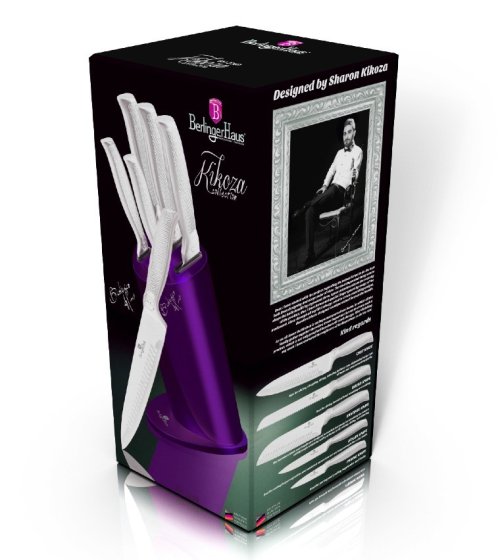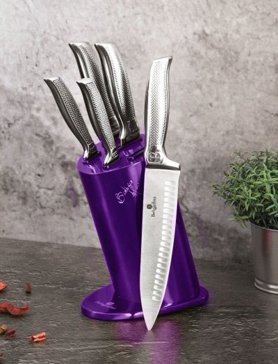 Sada nožů ve stojanu 6 ks Royal Purple Metallic Line Kikoza Collection je výbornou alternativou pro kuchaře různých úrovní, na jejíž výrobu byl použit kvalitní materiál: nerez ocel s nepřilnavým povrchem, vynikají perfektní ostrostí čepele a designem. Velmi oceníte i ergonomicky tvarovanou rukojeť, díky které se vám nože budou skvěle držet. Celá sada je dílem výrobce BERLINGERHAUS, jež se výrobě nožů věnuje poměrně dlouho a jsou řádně odzkoušeny.
