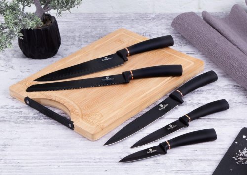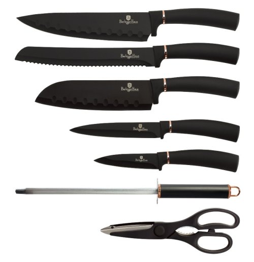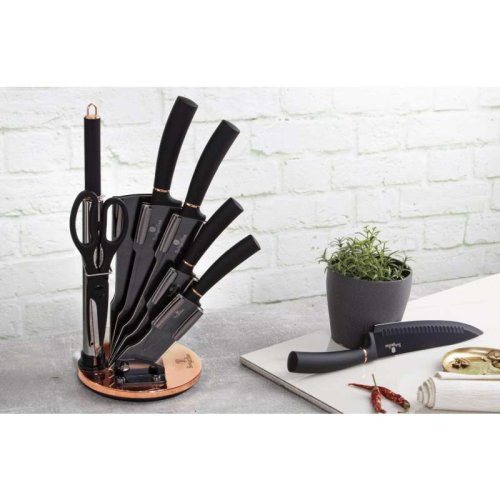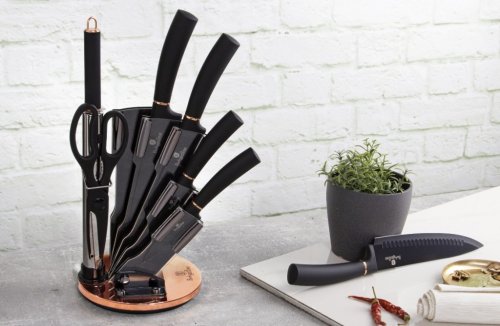 Sada nožů ve stojanu 8 ks Black Rose Collection je výbornou alternativou pro kuchaře různých úrovní, na jejíž výrobu byl použit kvalitní materiál: nerez ocel s nepřilnavým povrchem, vynikají perfektní ostrostí čepele a designem. Velmi oceníte i ergonomicky tvarovanou rukojeť, díky které se vám nože budou skvěle držet. Celá sada je dílem výrobce BERLINGERHAUS, jež se výrobě nožů věnuje poměrně dlouho a jsou řádně odzkoušeny.