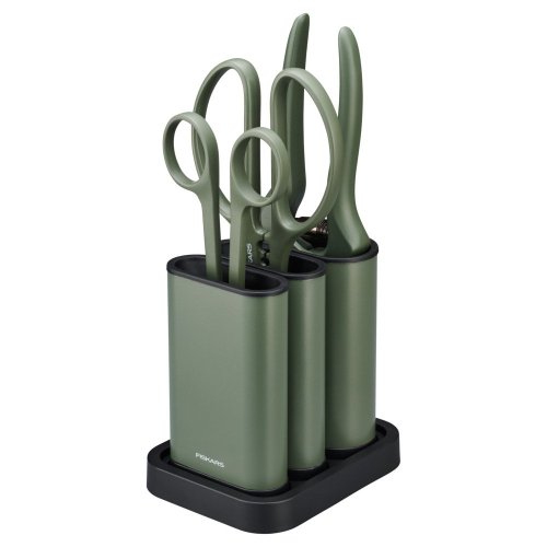 • Sada pro péči o pokojové rostliny Fiskars se třemi nůžkami obsahuje správné nástroje pro přesné zastřihávání a stříhání pokojových rostlin a květin. <br> • Velké nůžky jsou ideální pro stříhaní nejtužších výhonů pokojových rostlin až do průměru 18 mm. <br> • Nůžky prostřihávací na květiny jsou vhodné pro různá tvarování a stříhání pokojových rostlin a květin, mají vestavěný odstraňovač trnů a listů ze stonků. <br> • Nůžky prostřihávací jsou ideální na přesné prostřihávání pokojových rostlin, a to i v hustém porostu. <br> • Každé nůžky mají stylové volně stojící pouzdro, které může stát samostatně nebo může vložit do společného podstavce.