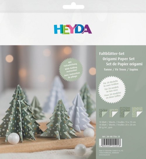 Sada obsahuje 20 listů ve dvou velikostech (15×15 cm, 20×20 cm) a dvou barvách. Gramáž papíru 80 g/m2. Vysoce lesklá zlatá povrchová úprava. S návodem k překládání. Origami je stará japonská technika skládání papíru.