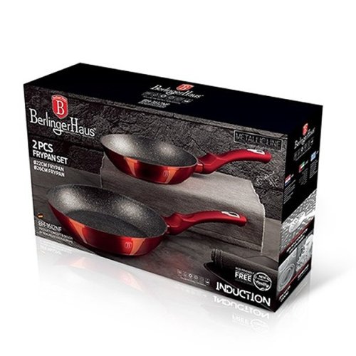 Tato sada pánví je vyrobena z kovaného hliníku, který zajišťuje vysokou kvalitu a odolnost. Sada obsahuje dvě pánve: jednu o rozměrech 22x4,5 cm s obsahem 1,3 litru a druhou o rozměrech 26x4,8 cm s obsahem 2,0 litru. Metalická vínová barva a elegantní design dodávají této sadě moderní vzhled, který se hodí do každé kuchyně.
