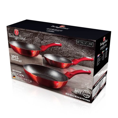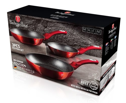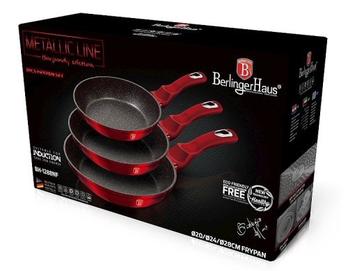 Sada pánví s mramorovým povrchem 3 ks Burgundy Metallic Line BH-1288