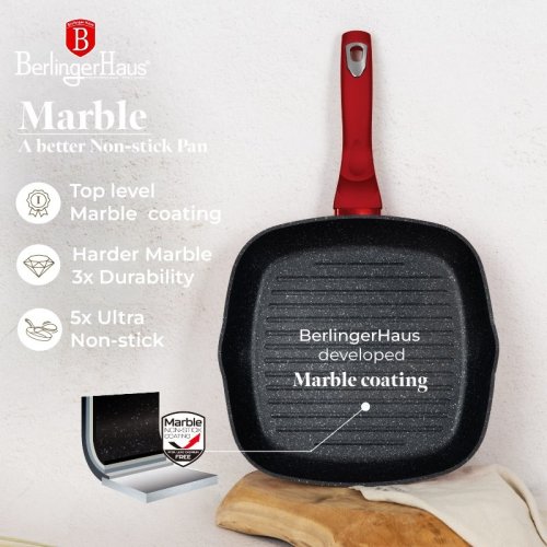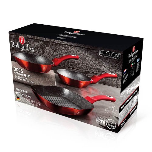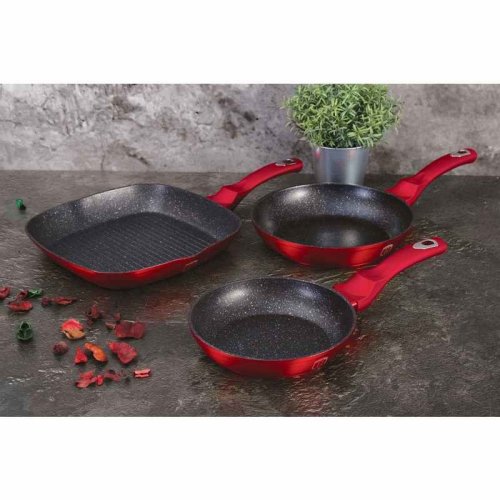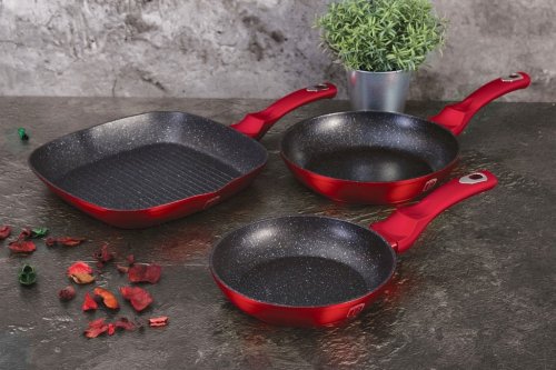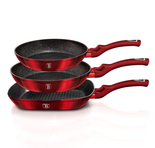 Sada pánví s mramorovým povrchem 3 ks Burgundy Metallic Line gril BH-1289