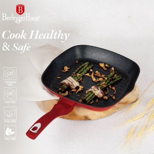 - materiál: kovaný hliník s mramorovým povrchem- barva: červená burgundy, metalická- Sada 3 ks obsahuje:- Pánev pr. 24 x 5 cm- Pánev pr. 20 x 4,2 cm- Grilovací pánev 28 x 28 cm- 3 vrstvý nepřilnavý povrch …