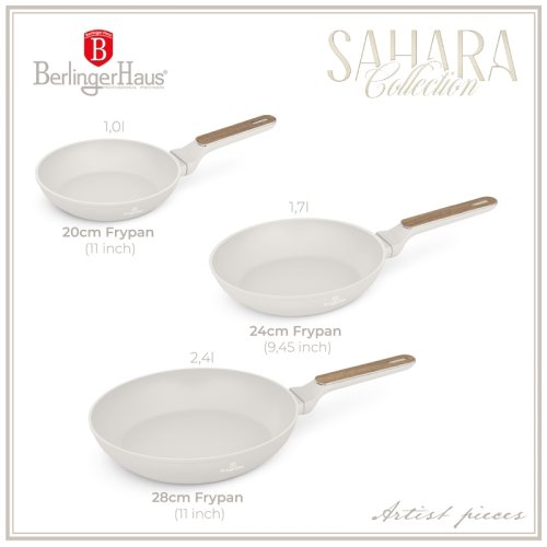 Objevte dokonalou rovnováhu mezi elegancí a funkčností s touto exkluzivní sadou pánví Sahara Nordic Collection. Matná krémová barva s jemnými dřevěnými detaily přináší do vaší kuchyně přírodní a nadčasový styl, zatímco titanový nepřilnavý povrch TitanPro zajistí perfektní výsledky při každém vaření.