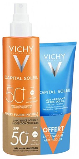 Voděodolný fluidní sprej SPF 50+ Capital Soleil (Water Fluid Spray) 200 ml Zklidňující mléko po opalování pro citlivou pokožku Capital Soleil (Soothing After Sun Milk) 100 ml