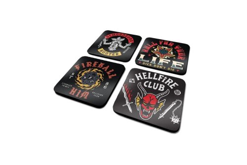 Sada obsahuje 4 podtácky s grafikou Hellfire Club z čtvrté řady oblíbeného seriálu Stranger Things od Netflixu. Hezký doplněk domácnosti každého fanouška! Materiál: korek
