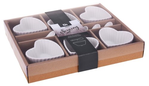 - materiál: bílý porcelán- perfektní pro servírování předkrmů, pochutin, dezertů, dipů a omáček- rozměry jedné misky cca: 9 x 4 cm- žáruvzdorné do 220 °C, lze využít také k zapékání v troubě- vhodné …
