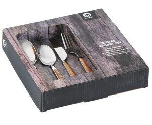 Sada je vhodná do myčky na nádobí. Tento příborový set je nejen krásný, ale také praktický. Můžete jej používat každý den nebo na speciální příležitosti. Vaši hosté budou ohromeni jeho kvalitou a stylovým vzhledem. Je vyroben z nerezové oceli a má 16 kusů. Jeho nerezový design dodá vašemu stolu atmosféru a eleganci.Materiál: Nerezová ocel 18/0Počet kusů: 14Design: stříbrný / dřevoObsah balení:4 x vidlička4 x lžíce4 x nůž4 x čajová lžička