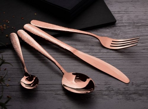 - Sada 24 ks obsahuje:- 6 x jídelní nůž- 6 x jídelní vidlička- 6 x polévková lžíce- 6 x čajová lžička- materiál: leštěná nerezová ocel- satinové matné měděné provedení- snadné čištění- dárkové balení- …