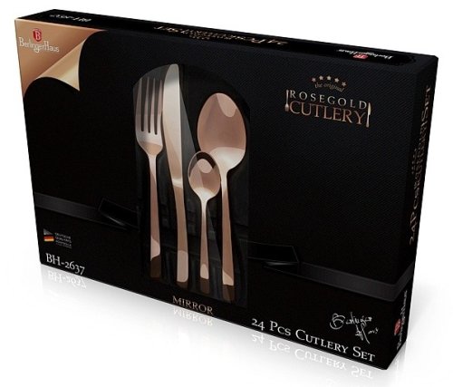 - Sada 24 ks obsahuje:- 6 x jídelní nůž- 6 x jídelní vidlička- 6 x polévková lžíce- 6 x čajová lžička- materiál: leštěná nerezová ocel- exkluzivní moderní design v rosegold barvě- lesklé provedení- snadné …